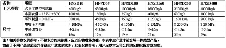 HNSD系列高塔壓力噴霧干燥機(jī)技術(shù)參數(shù)表: